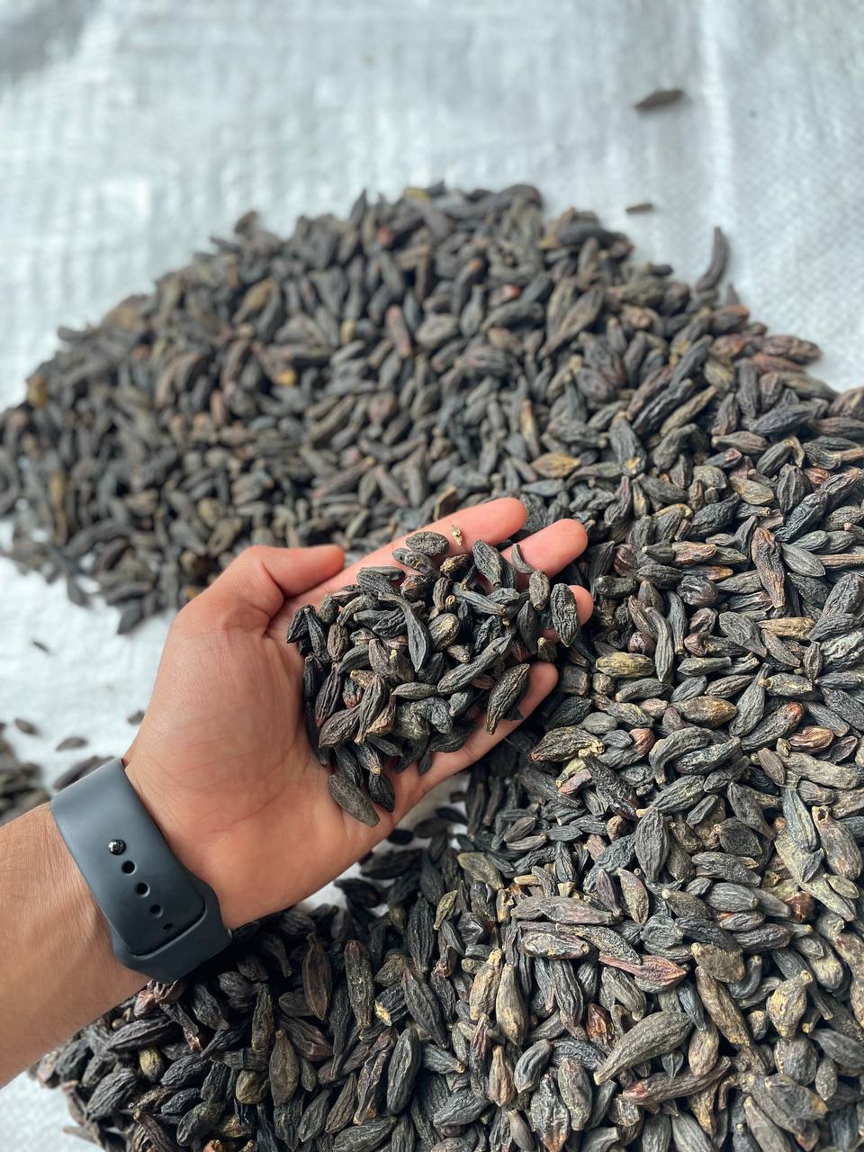 Once all the collection for the day is completed, people bring the seeds to their backyards, farms or open ground and spread them in sunlight to start the process of drying. This process may take days or even weeks and is a critical stage in the value chain that decides this product's colour and form. Uncertain rain or a moist environment can hamper the state of the product, and its exposure to water might leave white stains. We guide farmers regarding the value of 'Black' Himej and incentivize farmers to take quality precautions to bring the best product to us.